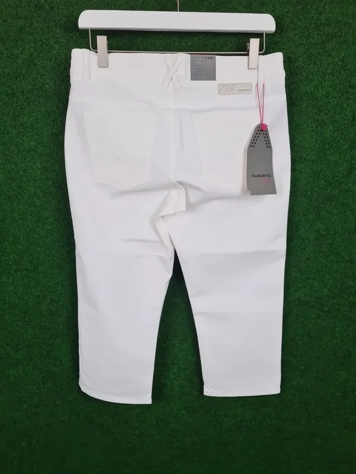 ALBERTO Mona-C Capri Golfhose – Damen (Weiß, 34, 3xDRY Cooler, Regular Fit)