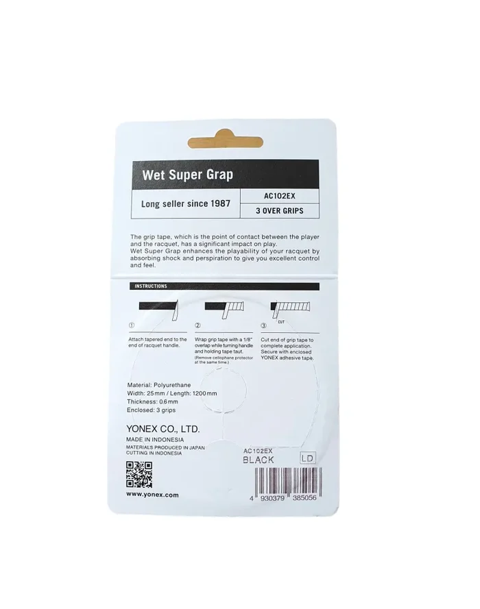 Yonex Wet Super Grap 3er (AC102 EX) Schwarz ableitet die Feuchtigkeit und vermittelt der Hand selbst bei sehr feuchten Bedingungen ein trockenes Gefühl. Jedes YONEX Griffband wurde entwickelt, um eine zuverlässige Verbindung zwischen Hand und Schläger herzustellen.